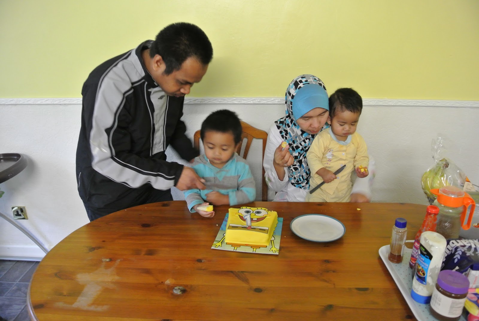 Kat bawah ni adalah foto masa kami sambut his 1st birthday on last November 16th, di pagi hari before kami ke universiti. Nak upload video sbenarnya tp tak tau kenapa tak boleh.